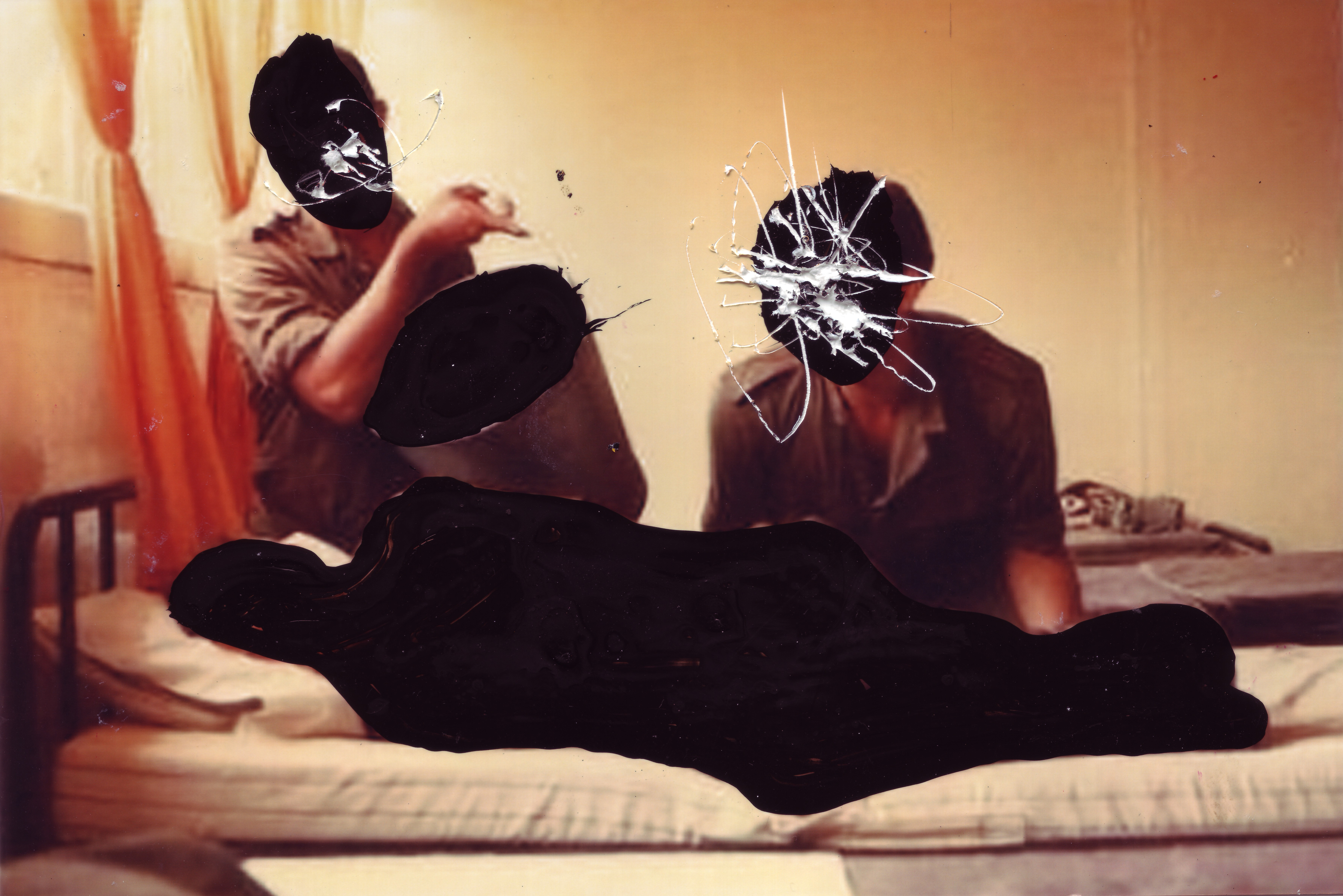 Based in an archive of pictures posted on social media groups by South African ex-conscripts, many of whom fought in South Africa’s so-called “Border War” in Namibia and southern Angola from the 1960ies to the 1980ies, David Brits uses mark-making, erasure and scratching, thus embodying the complexities of working through his own masculinity and inherited history in post-Apartheid South Africa.