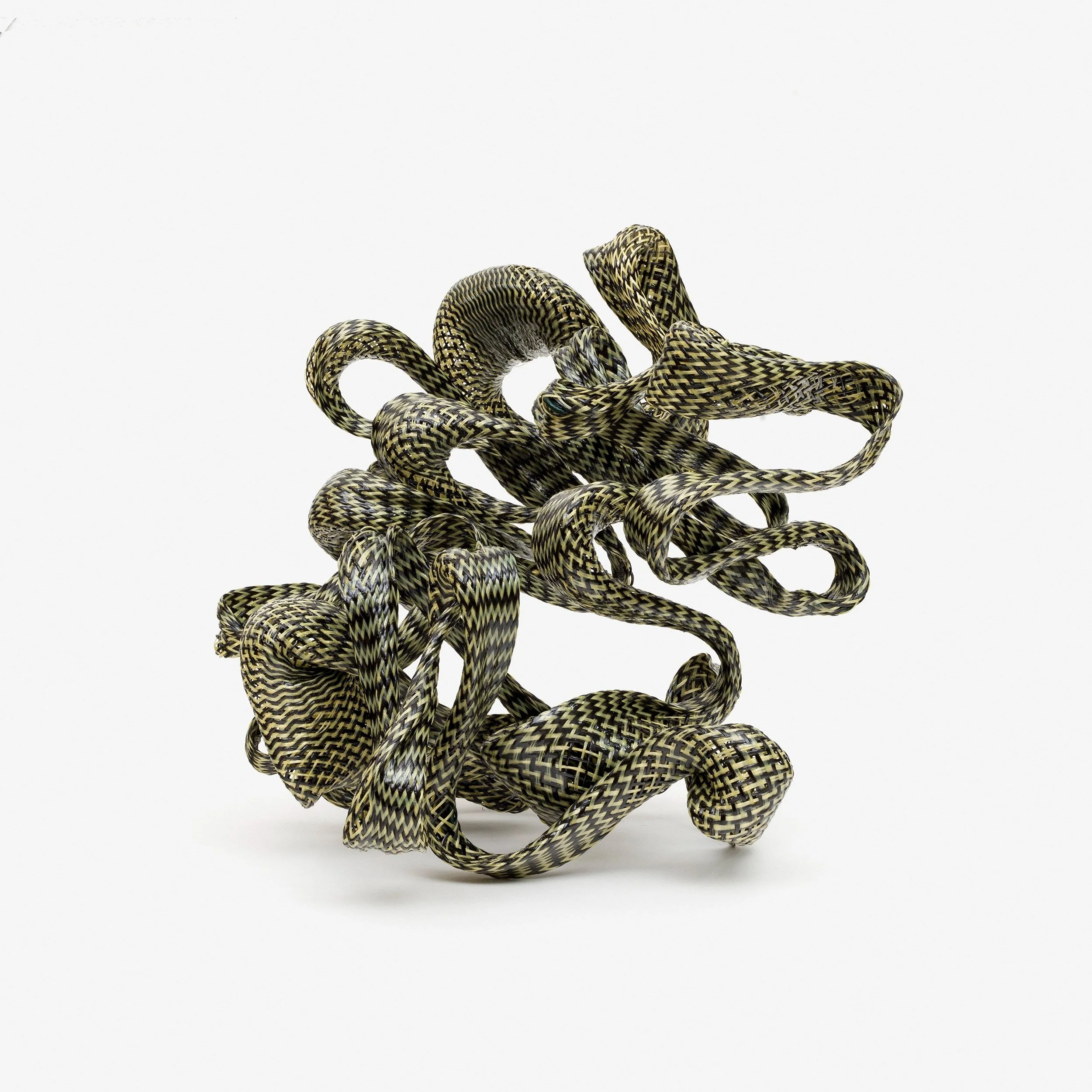 Brits’ sculptural works take as their principal archetype the “Ouroboros”, a Greek-derived word describing the symbol of a snake devouring its own tail. The artist brings forth an image whose logic refutes itself, and which somehow suspends time.