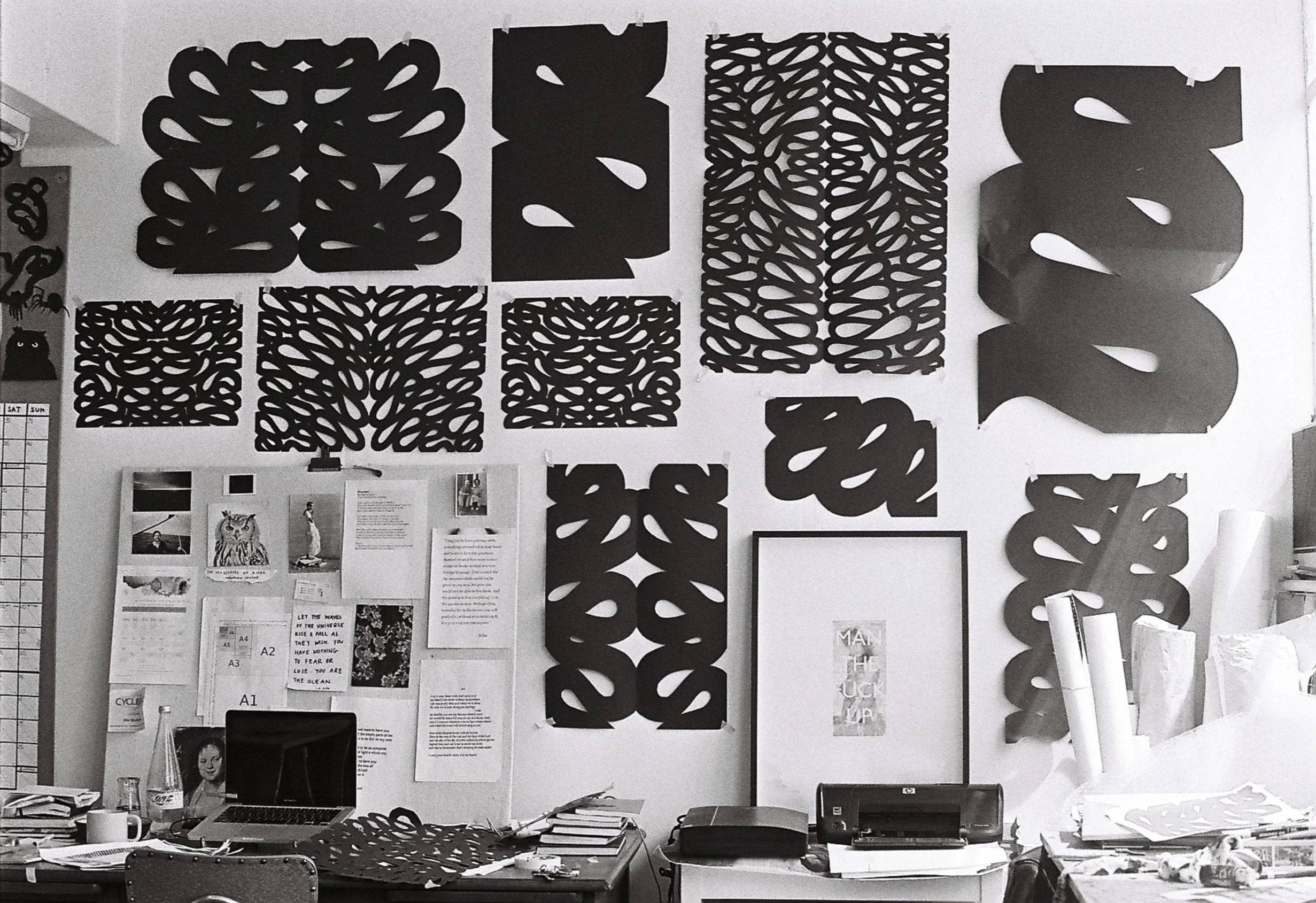 Artworks on Brits’ studio wall. Photo: Bony Ska.